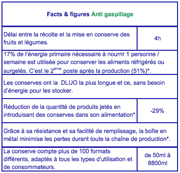 Les conserves ont la DLUO la plus longue et sont conservées à température ambiante sans risque de rupture de chaîne du froid, évitant encore une fois les pertes et le gaspillage.
